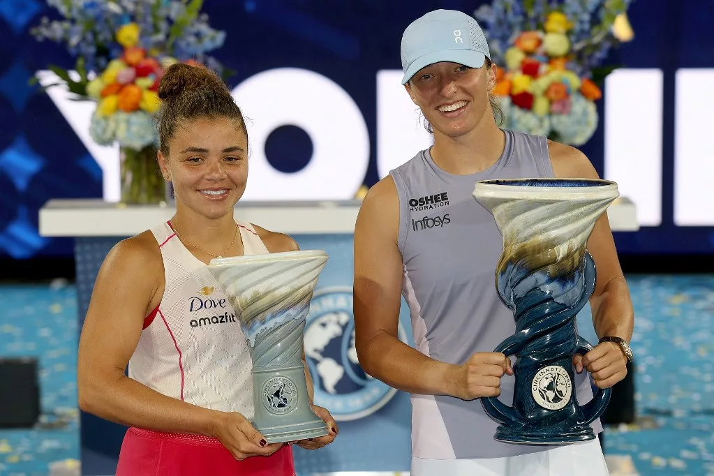 MH/MTI 2025. augusztus 19. kedd. 16:05 Iga Swiatek két játszmában nyert Jasmine Paolini ellen a 9,2 millió dollár (3,1 milliárd forint) összdíjazású cincinnati tenisztorna női versenyének hétfői döntőjében. Az olasz…